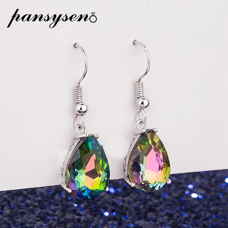 PANSYSEN Настоящее серебро 925 ювелирные изделия Радуга Топаз Драгоценный Камень Висячие серьги женские вечерние ювелирные изделия серьги аксе...
