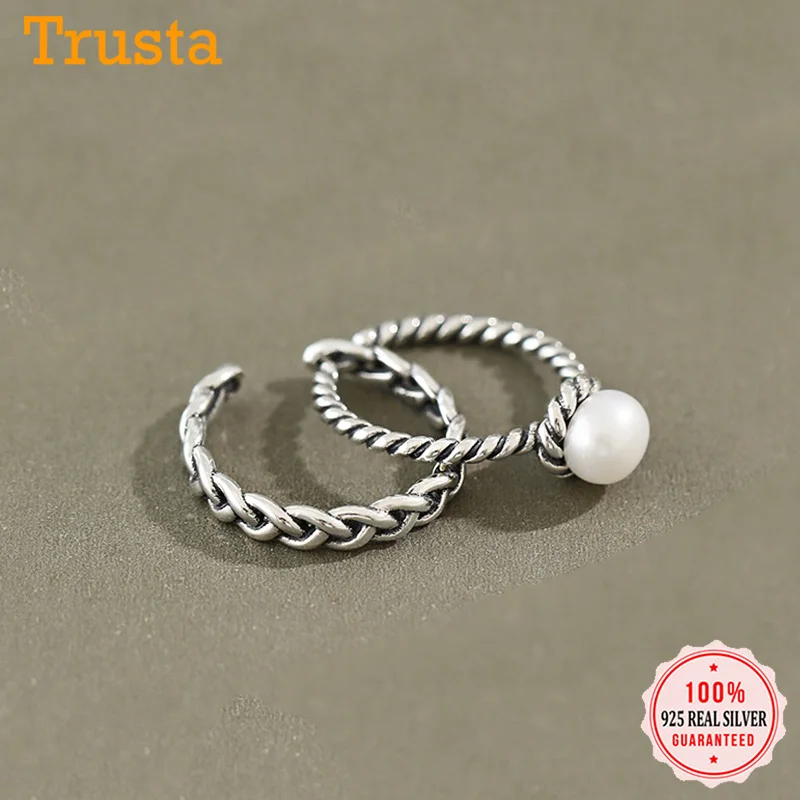 Trustdavis, Настоящее серебро 925 пробы, милая Геометрическая коса, крученый жемчуг, Открытое кольцо для женщин, свадебные ювелирные изделия, подарок DA1015