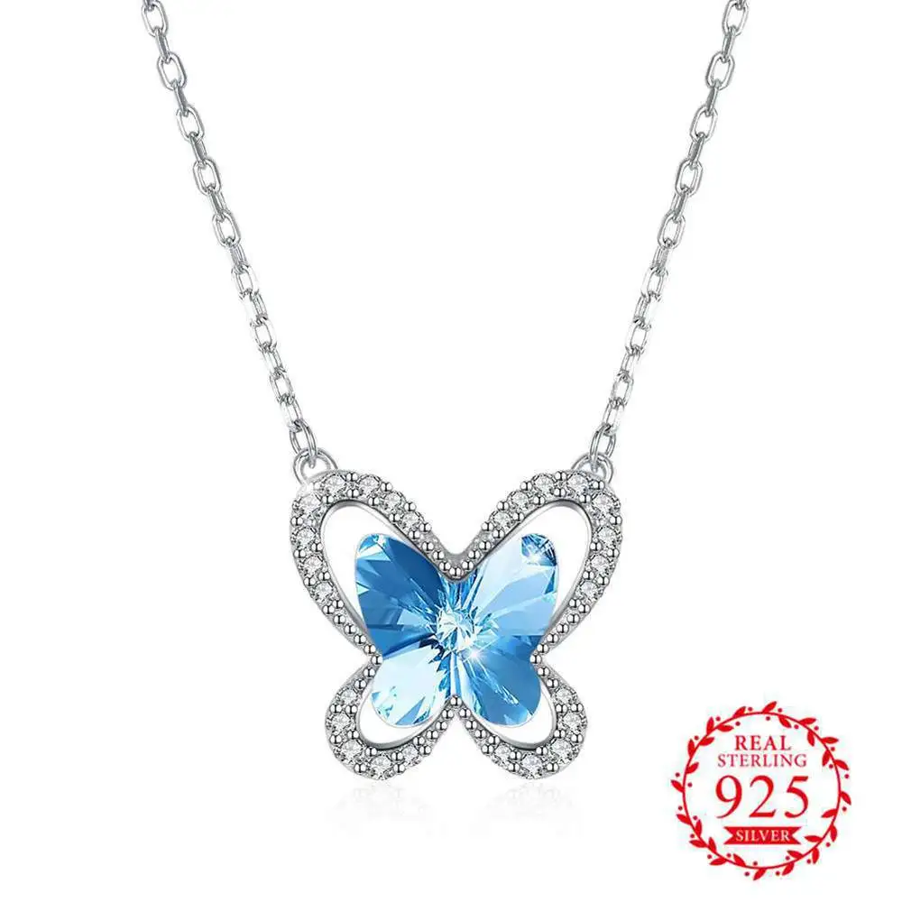 Jemmin 2 цвета прекрасный полая Бабочка Кристалл Настоящее серебро 925 проба Цепочки и ожерелья для Для женщин девочек ювелирные украшения для п...