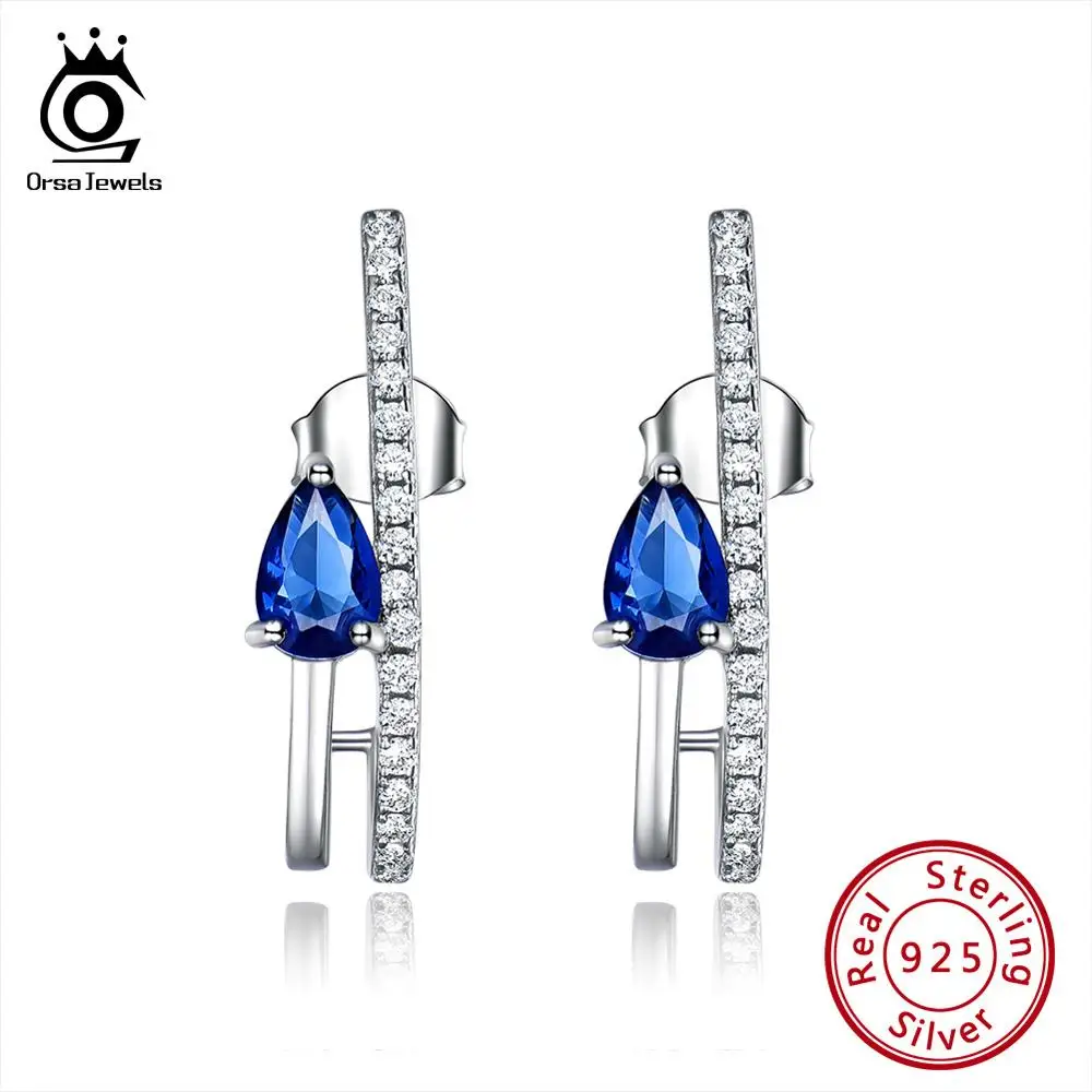 ORSA JEWELS Твердые 925 стерлингового серебра для женщин гибки висячие серьги капли воды форма большой сапфир Новые блестящие украшения VSE09