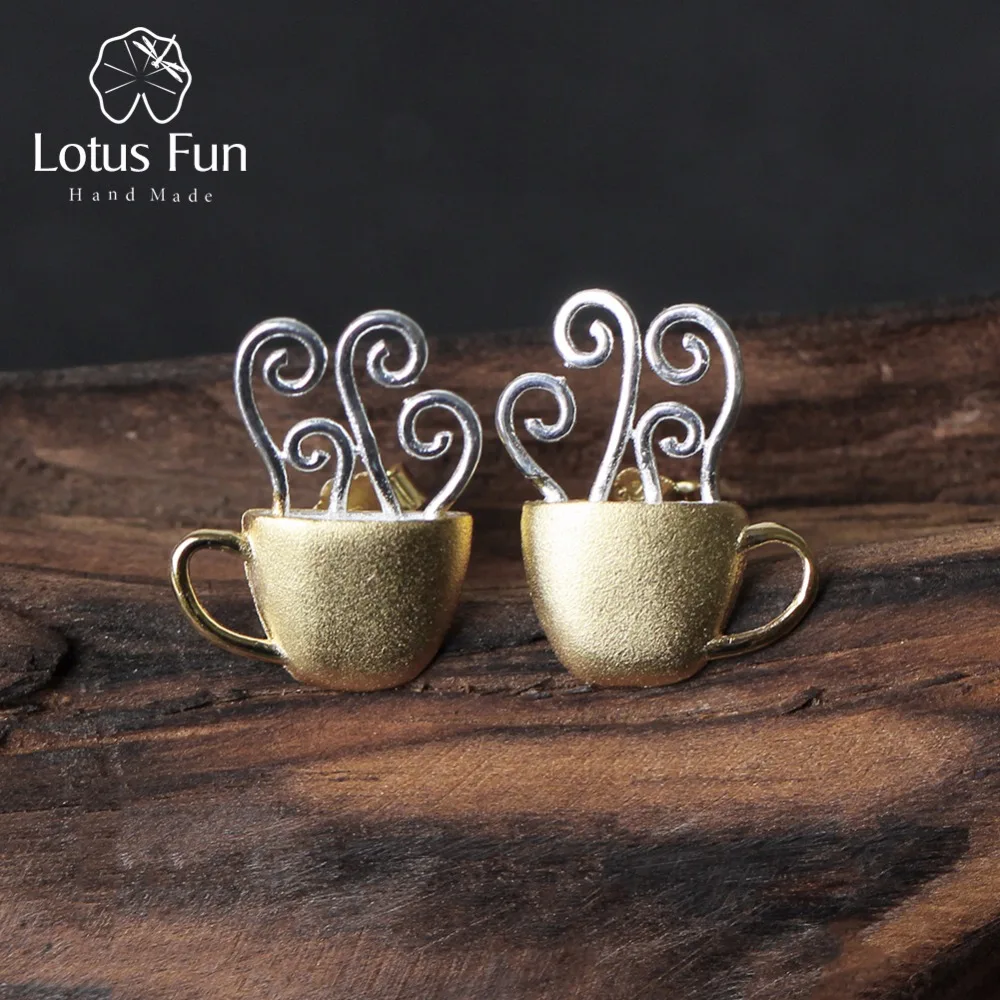 Lotus весело Настоящее стерлингового серебра 925 природных творческий ручной Fine Jewelry горячая чашка кофе Модные серьги стержня для женщин brincos