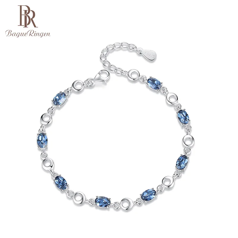 Bague Ringen aqua blue браслеты с топазами для женщин Настоящее серебро 925 проба темно-синий драгоценный камень браслет для студентов подарок на день ...