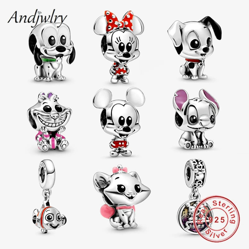 Оригинальные Подвески Pandora, браслет и ожерелье из стерлингового серебра 925 пробы с Микки и Минни, Очаровательные Подвески с бусинами, подвески Berloque
