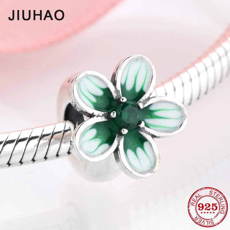 925 пробы Серебряный Роскошный зеленый CZ цветок эмаль разделитель пробки Бусины Подходят оригинальный Pandora браслет для изготовления ювелирных изделий