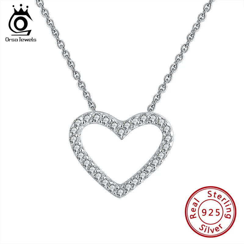 ORSA JEWELS 925 серебряный узор любовь Подлинный экземпляр ожерелья с кулоном Прозрачный верх Циркон День Святого Валентина изысканный подарок хорошее ювелирное изделие SN216