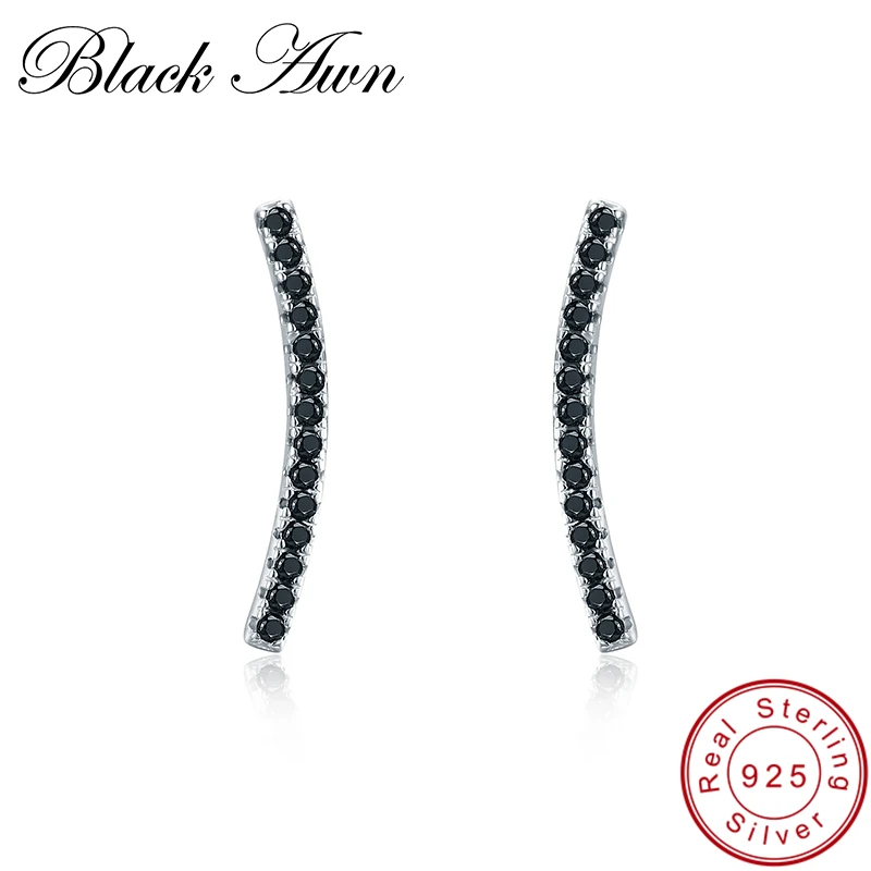 [Черный ость] Мода 925 пробы Серебряные серьги черной шпинели Обручение серьги стержня для Для женщин серебро 925 ювелирные изделия I021