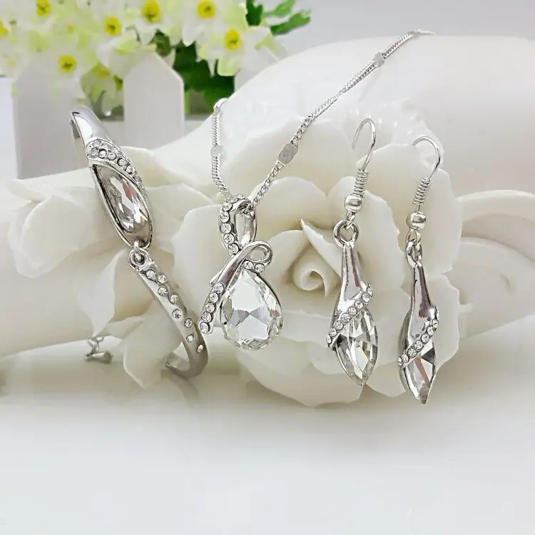 Изысканные капли австрийский кристалл свадебный ювелирный набор, женский 925 серебро ожерелье серьги набор подарок s0100