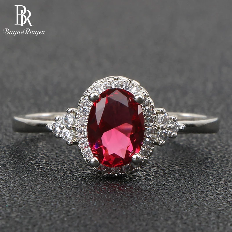 Bague Ringen, серебро 925, кольца для женщин, хорошее ювелирное изделие с драгоценными камнями, Овальный Рубин, циркон, модный юбилей, женский подар...