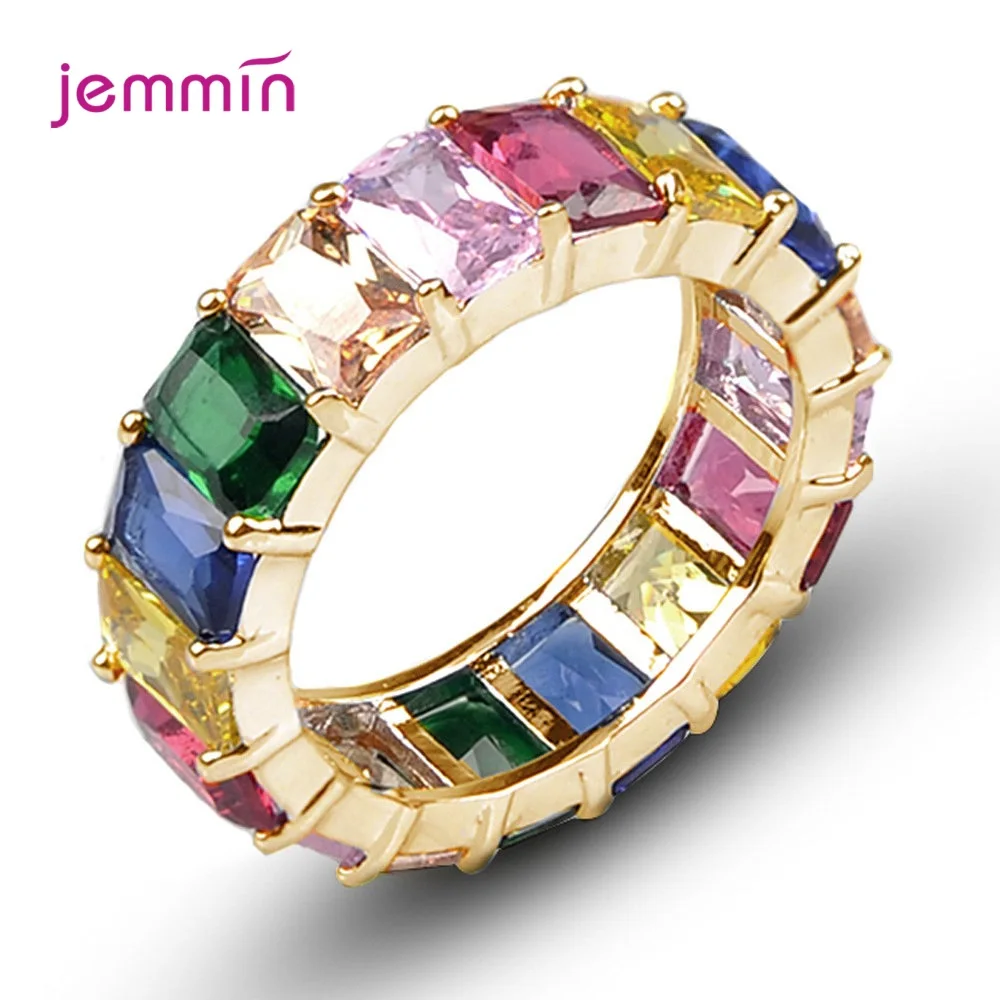 Красочные циркониевый камень cz Радуга 925 пробы серебряные кольца для женщин модные Свадебные обручальные ювелирные изделия