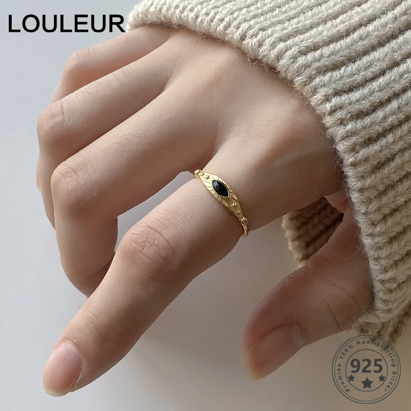 LouLeur, Настоящее серебро 925 пробы, кольца с черными глазами, минималистичные женские Золотые открытые кольца для женщин, модные роскошные ювелирные изделия, подарки