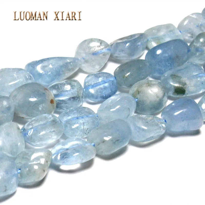 LUOMAN XIARI Нерегулярные натуральный Аквамариновый камень бисера для изготовления ювелирных изделий DIY браслет материал ожерелья Strand 15''