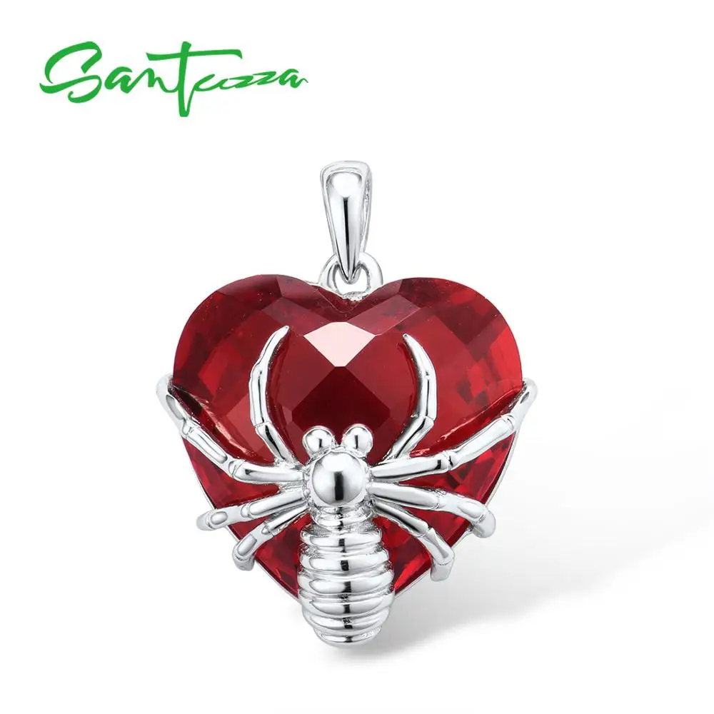 Женский кулон в форме сердца SANTUZZA, Серебряный кулон из чистого серебра 925 пробы с красным камнем и пауком, модные вечерние ювелирные украшения