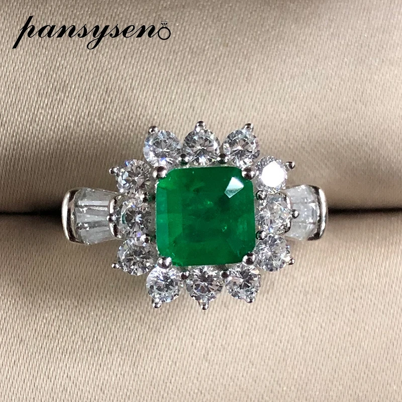 PANSYSEN Новое поступление Винтаж 100% 925 пробы Серебряные ювелирные изделия кольцо натуральный изумруд драгоценный камень Кольца с алмазами для...