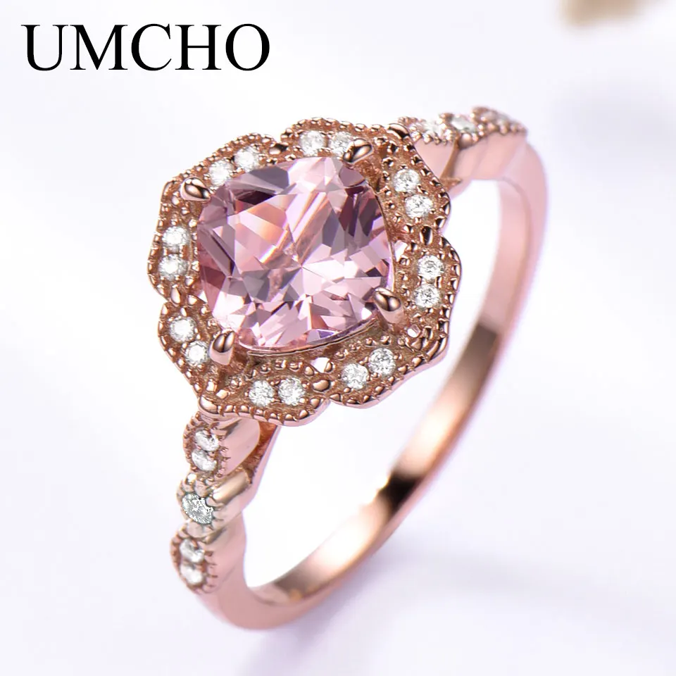 UMCHO Серебро 925 Nano морганит кольца для Для женщин Обручение вечерние розового золота Цвет кольцо Новая мода Обещание Кольца Fine Jewelry