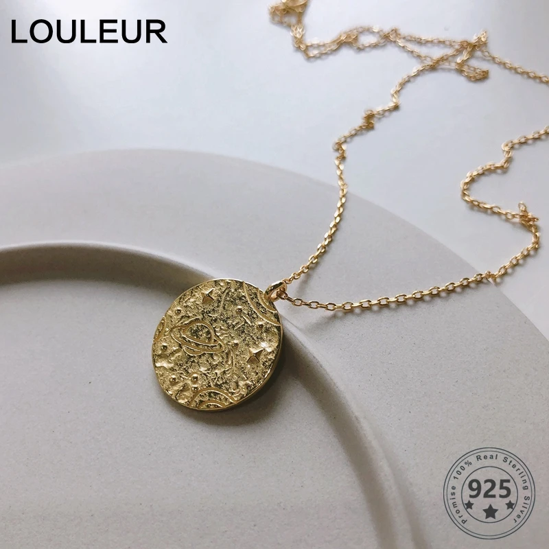 Louleur 925 серебро галактика, планета ожерелье Золото Круглый креативный эмбосс кулон ожерелье для женщин модные ювелирные изделия подарки