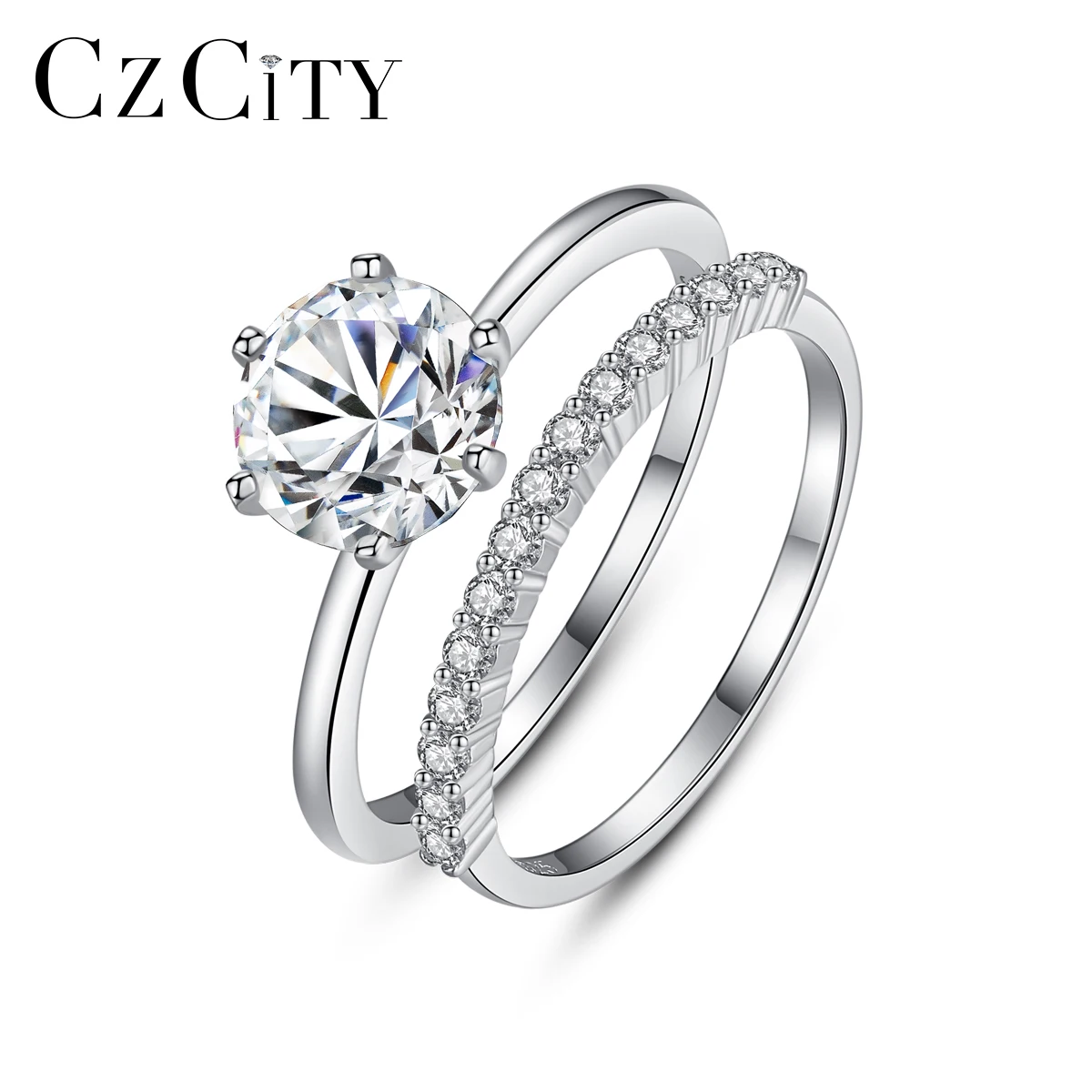 CZCITY персонализированные стерлингового серебра 925 наборные обручальные женские перстни для девочек Свадебная вечеринка микро CZ Ювелирные и...
