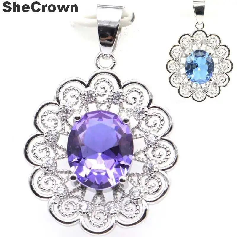 Романтический Большой овальный 18x15 мм огонь с радужным мистическим топазом натуральный CZ Женская Серебряный кулон 32x20