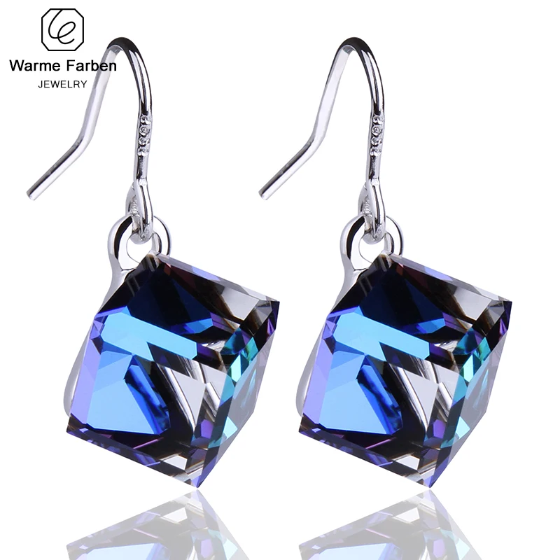 Серьги-капельки из серебра 925 пробы с кристаллом Сваровски, квадратные кубические серьги, хорошее украшение в подарок для девушек