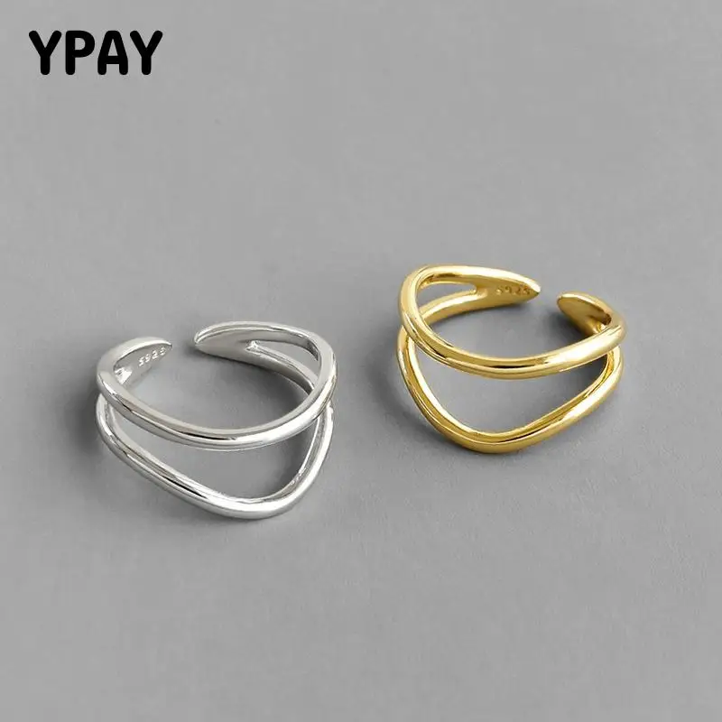 YPAY 100% Настоящее серебро 925 пробы Открытые Кольца для женщин Корея INS простое Двухслойное регулируемое кольцо Изящные Ювелирные изделия YMR1034