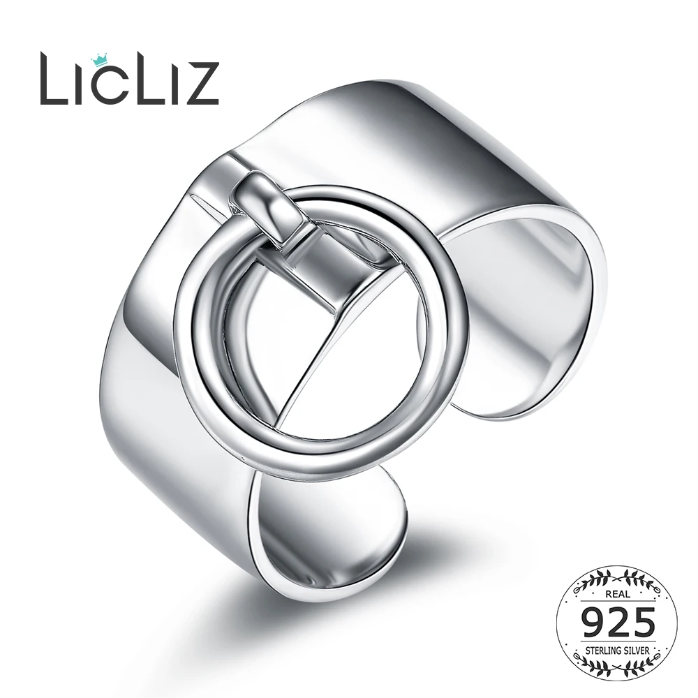 Женские регулируемые кольца на манжетах LicLiz, 925 пробы, серебряное кольцо с круглым кольцом, ювелирные изделия, Anillos Plata 925 Para Mujer LR0323
