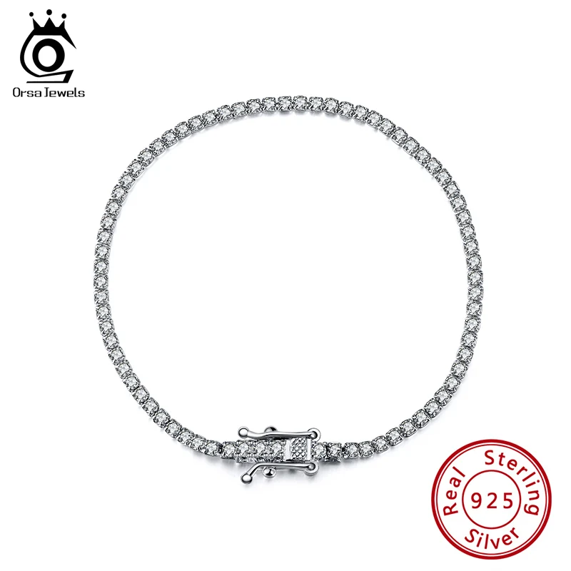 ORSA JEWELS Аутентичные браслеты для девочек из стерлингового серебра 925 пробы с прозрачным кубическим цирконием, серебряный браслет для свидания, вечеринки, ювелирная цепочка SB61