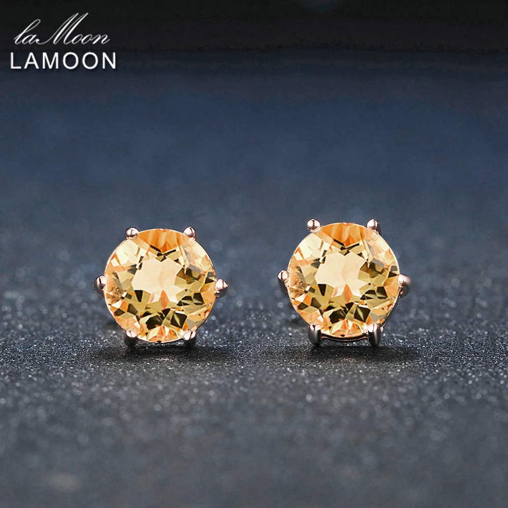Lamoon 7 мм 1.2ct круглый натуральный цитрин 925 пробы серебро простой Стад Серьги S925 для Для женщин LMEI027