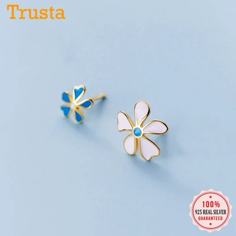 Женские асимметричные серьги-гвоздики с цветком Trustdavis, из настоящего серебра 925 пробы, ювелирное изделие DA320