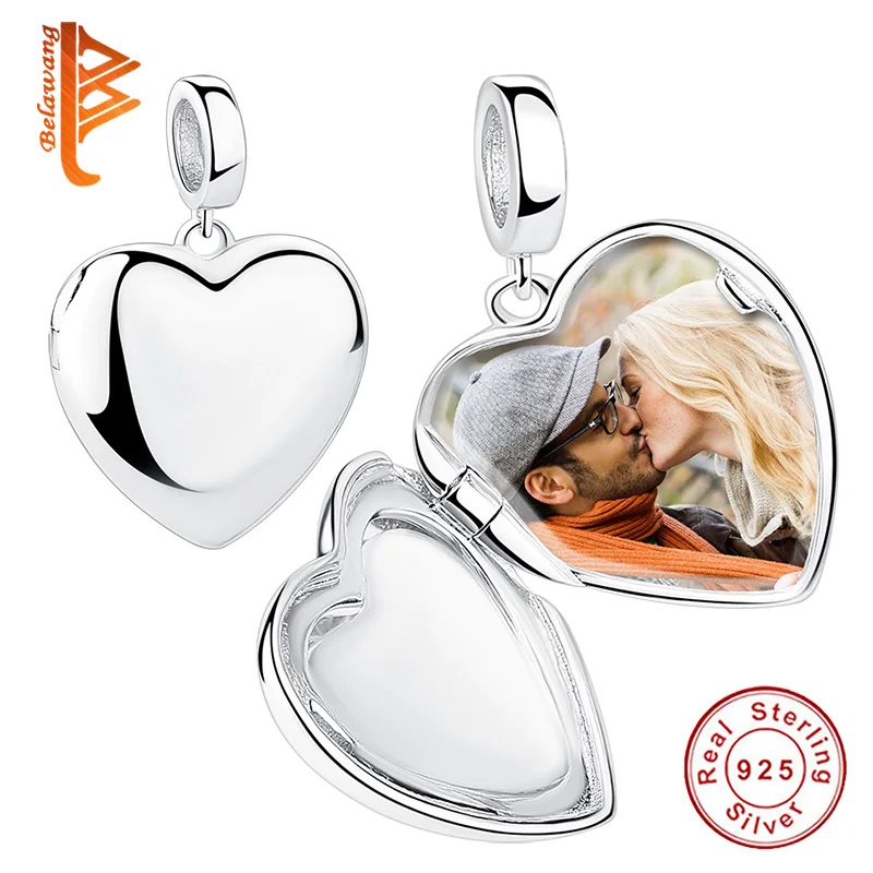 925 стерлингового серебра Forever Love Открытое сердце на заказ фото Бисер для подвески браслет ожерелье DIY для женщин Персонализированные ювелир...