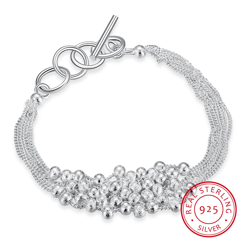 LEKANI Лидер продаж 925 пробы серебряные ювелирные изделия Модные шесть линий матовый бусина, жесткий браслет Pulseiras de Prata для женщин подарок