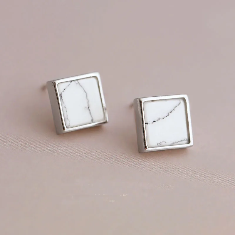 Женские квадратные серьги-пусеты Flyleaf, из серебра 925 пробы с натуральным мрамором, модные гипоаллергенные Серебряные украшения