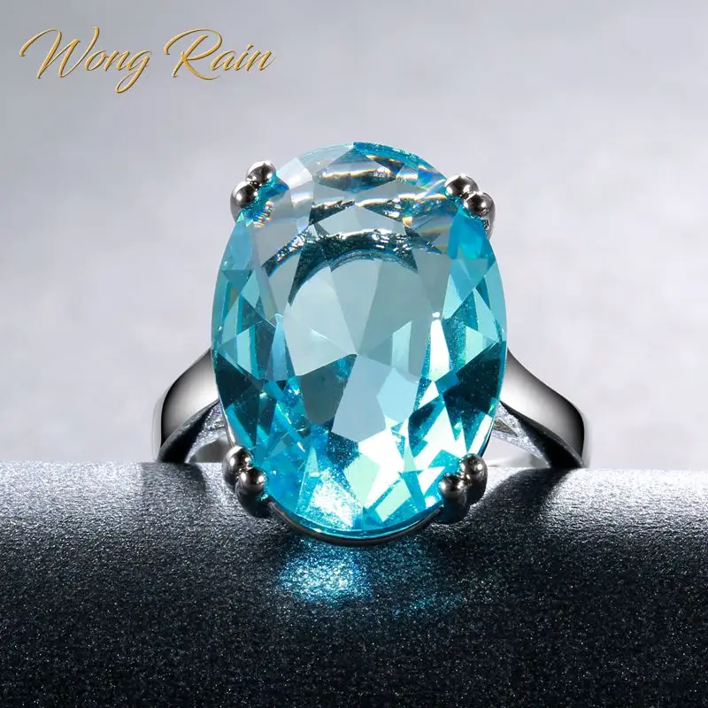 Wong Rain Classic 100% стерлингового серебра 925 пробы Овальный Аквамарин полудрагоценный камень обручальные свадебные кольца из белого золота оптовая продажа ювелирных изделий