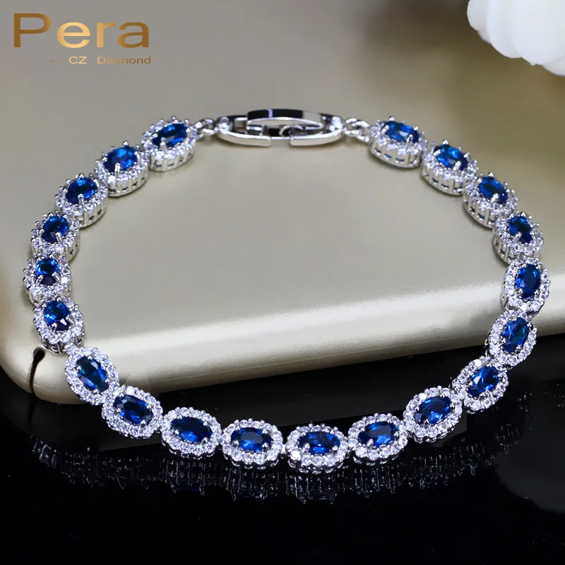 Pera Модные женские ювелирные изделия из стерлингового серебра 925 пробы летний дизайн темно-синий CZ Кристалл Топаз Овальные браслеты для Дня матери B070
