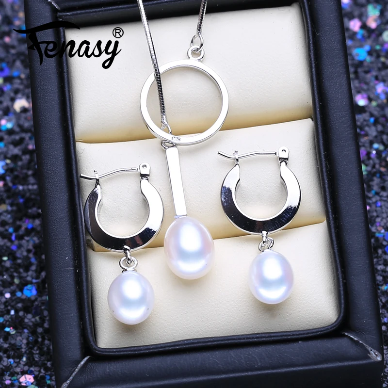 FENASY, 925 пробы, серебряные ювелирные наборы, висячие серьги из натурального жемчуга, на заказ, ожерелье, Роскошная подвеска, цепочка, ожерелье для женщин