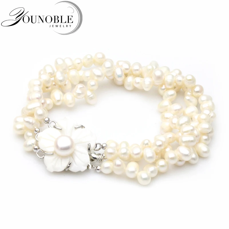 Белый натуральный пресноводный жемчуг женский браслет, многослойный милый браслет на день рождения