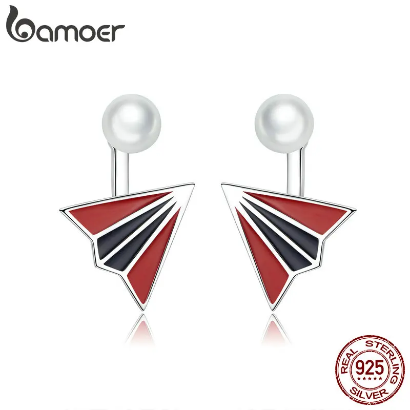 Bamoer, эмалированные бумажные серьги-гвоздики в форме самолета для женщин, с памятью о детском возрасте, 925 пробы, серебряные модные ювелирные изделия BSE126