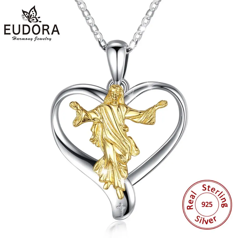 Юдора 925 пробы серебряные подвески девственная Мария кулон Бог ожерелья, христианское религиозное ювелирное изделие, сердце, колье-чокер для Для женщин D530