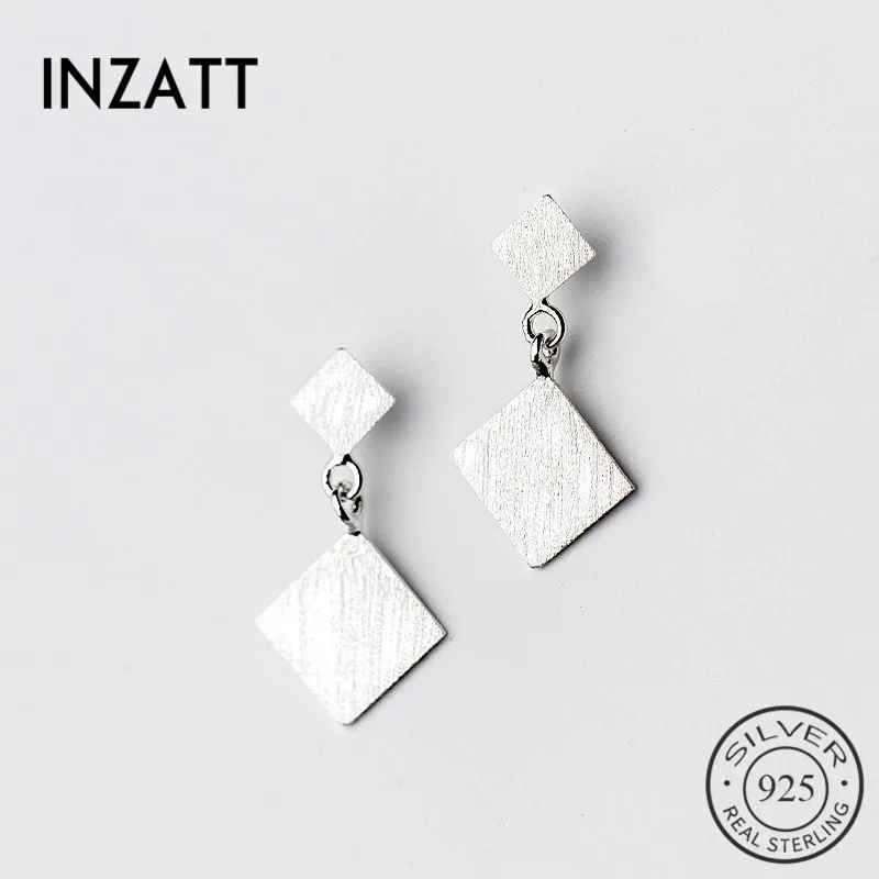INZATT Boho Настоящее 925 пробы серебро минималистский Мороз квадратный Висячие серьги ювелирные украшения личность Pendientes Mujer Moda 2018