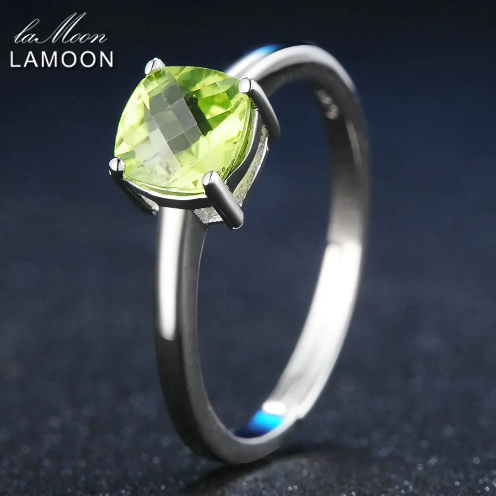 LAMOON 6 мм Природные квадратным вырезом перидот 925 пробы серебро простой Обручение кольцо Для женщин Jewelry S925 LMRI037