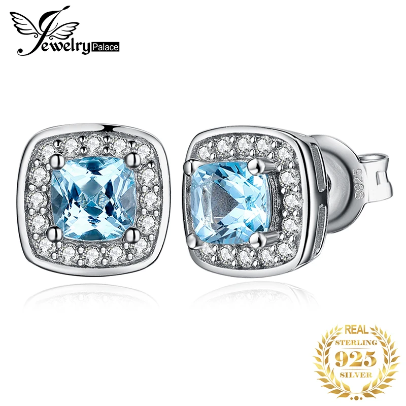 JewelryPalace 0.8ct Подушка подлинный синий топаз фианит огранки «маркиза» Halo коктейль женские серьги 925 пробы серебро