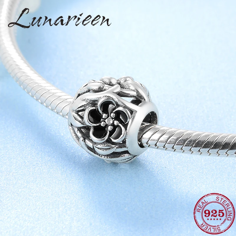 Новый 925 пробы серебро Полые циркон цветок дамы аксессуары из бисера подходят оригинальный браслет подвес Пандора ювелирных изделий