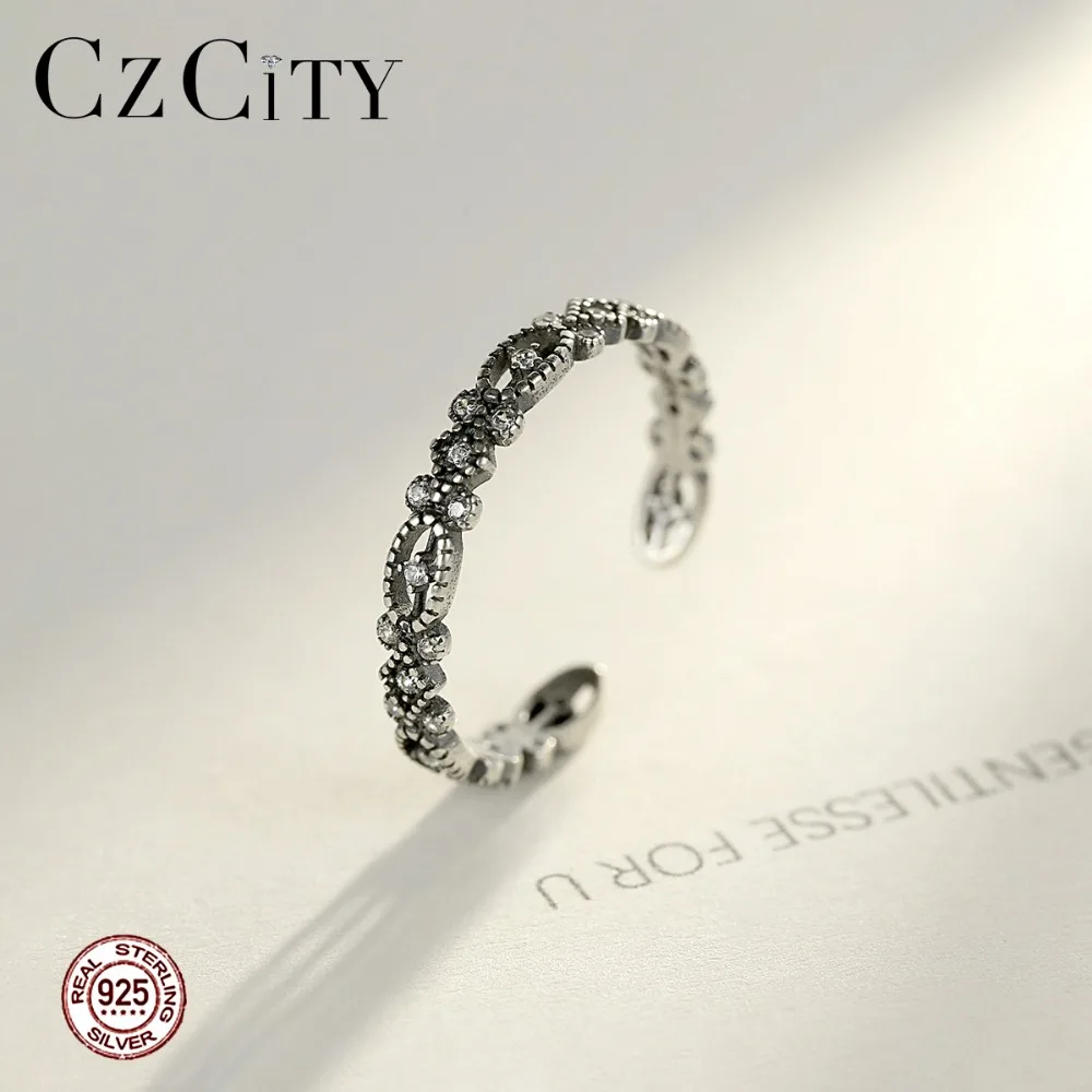 CZCITY высокое качество 925 пробы серебряные Открытые Кольца для женщин полые блестящие CZ Модные женские ювелирные изделия лидер продаж Рождес...