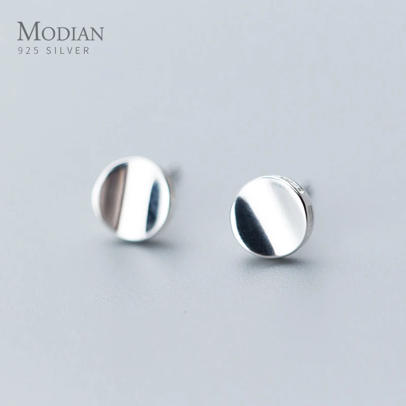 Женские круглые серьги-гвоздики Modian, простые серьги из стерлингового серебра 925 пробы с уникальным дизайном, свадебные ювелирные изделия