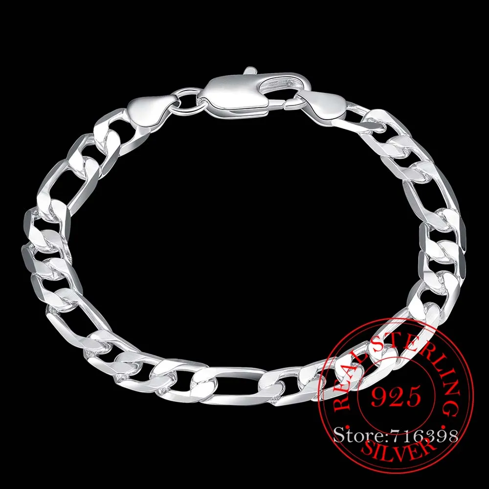 Горячая Распродажа, 8 мм/6 мм, мужской браслет-цепочка из Фигаро, серебро 925 пробы, браслеты на запястье, 925 пробы, серебро, ювелирные украшения, 8 дюймов, браслет для мужчин