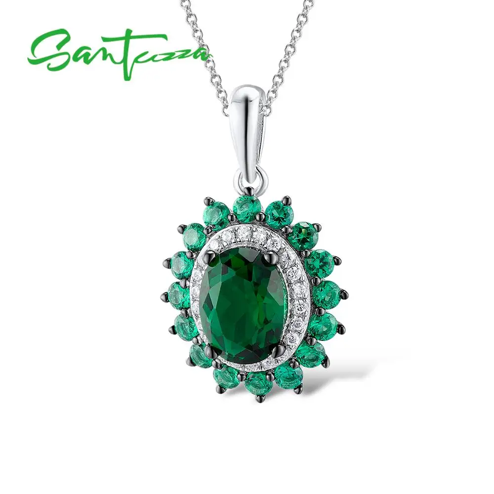 Серебряный кулон santuza для женщин, чистое серебро 925 пробы, роскошные сверкающие овальные зеленые шпинели, трендовая Подвеска для вечеринок, ...