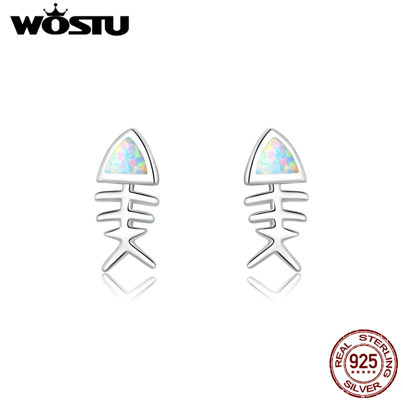 Женские серьги-гвоздики WOSTU, из настоящего стерлингового серебра 925 пробы с Фиш-костями и опалом, свадебные маленькие простые серьги, милые ювелирные изделия, подарок, CQE857