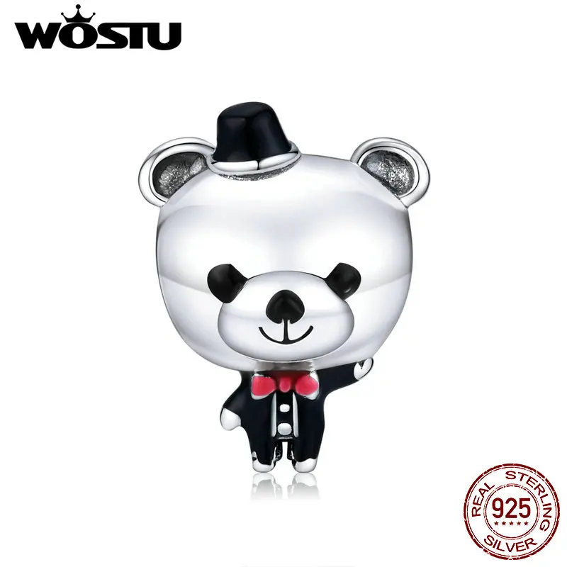 WOSTU Свадебные бусы с медвежонком из стерлингового серебра 925 пробы Подвески жениха и невесты подходят к оригинальному браслету кулон юбилейные ювелирные изделия подарок CQC1473