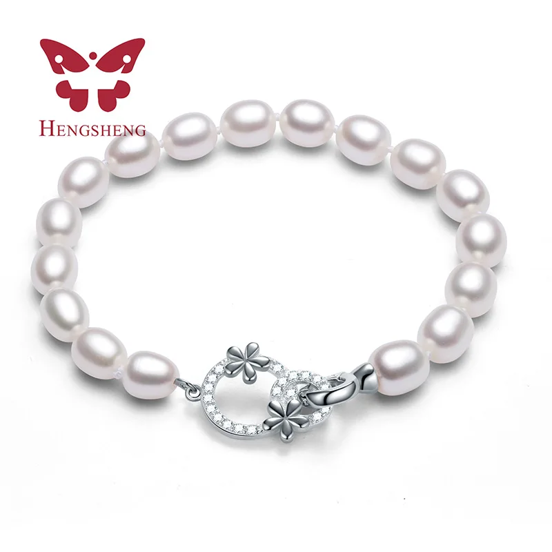 Красота цветок 8-9 мм натуральный пресноводный жемчуг браслет для Для женщин подарок, новинка 2017 года Белый розового и фиолетового цветов см...