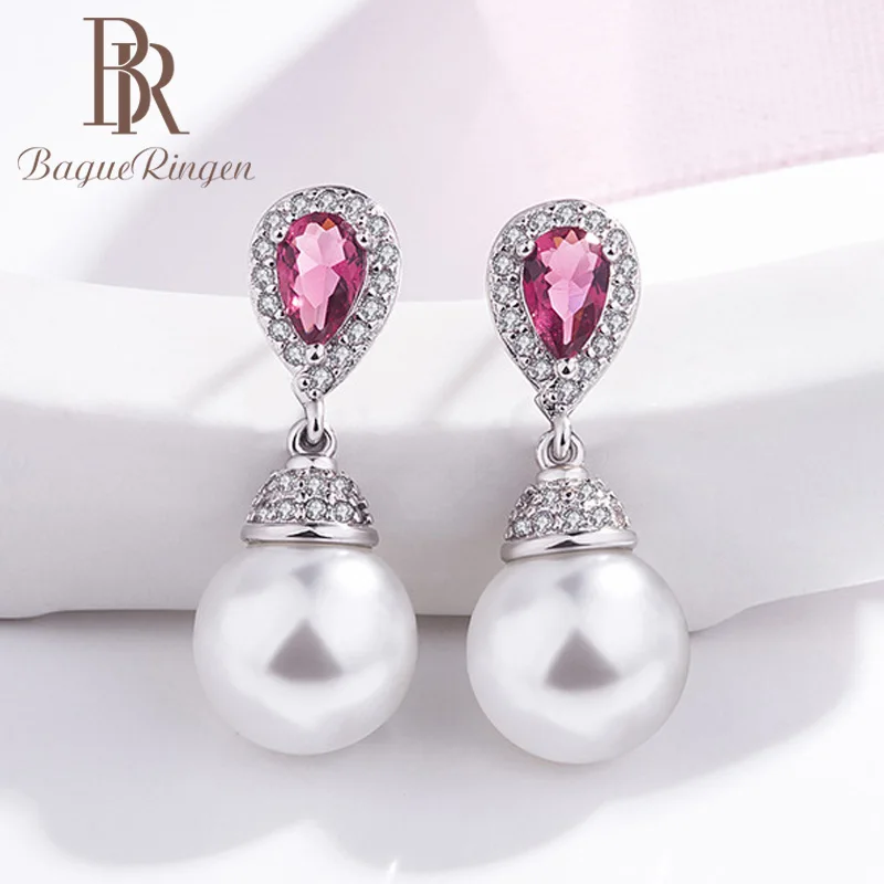 Begua Ringen 925 стерлингового серебра Висячие серьги ювелирные изделия серьги с круглым жемчугом Циркон рубин ювелирные изделия женские вечерни...