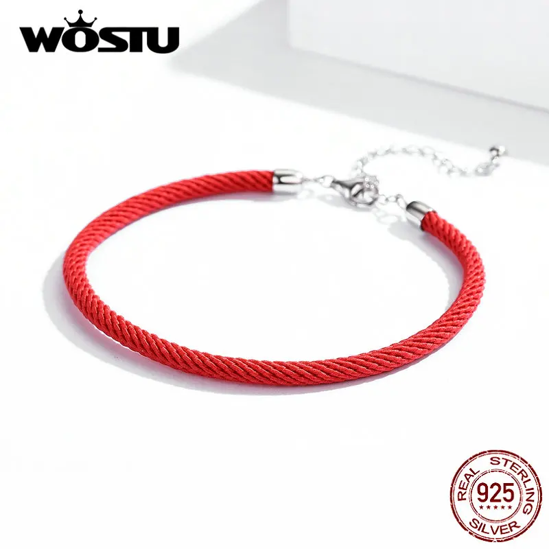 WOSTU 100% настоящий 925 пробы Серебряный Красный веревочный браслет классический счастливый браслет подходит бусины Подвески DIY Изготовление ю...