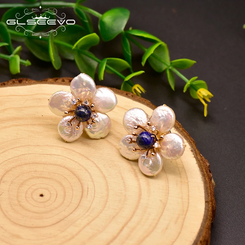 Женские серьги-пусеты GLSEEVO, из серебра 925 пробы с натуральной пресной водой и жемчугом в стиле барокко